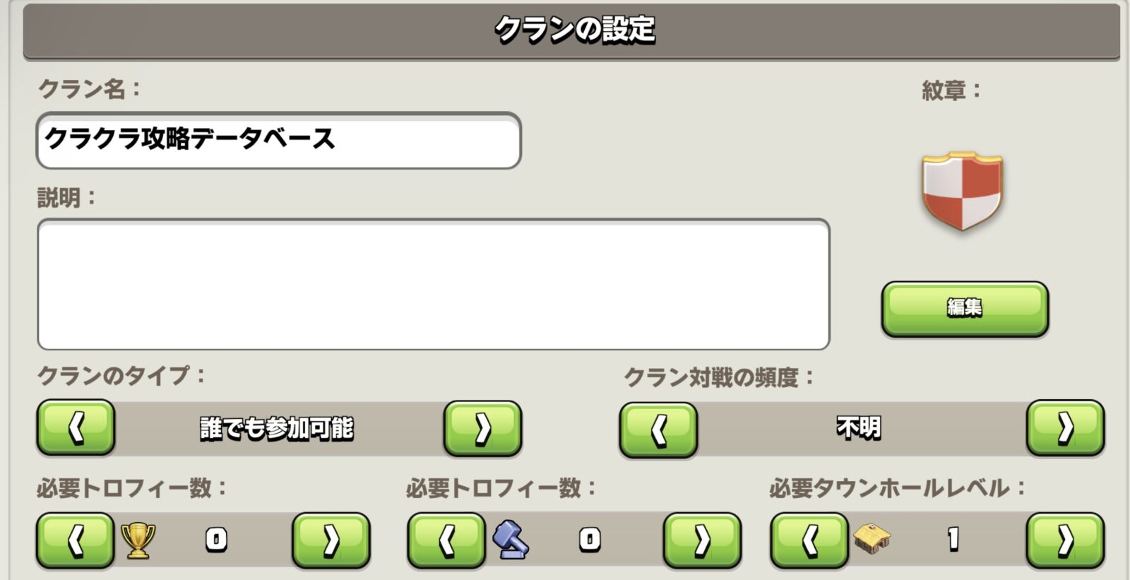 クラン設定画面①