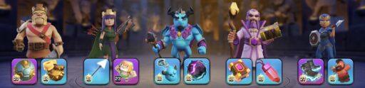 TH16終了時点で、キング・クイーン・ロイをスーパーレア装備2種で組める状態であれば、現環境のユニット編成をすべて網羅することが可能です。TH17環境で問題なく戦える戦力を保有しています。