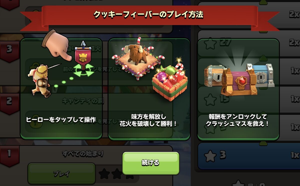 各ステージをクリアして、星を集めることで報酬を受け取ることができます。