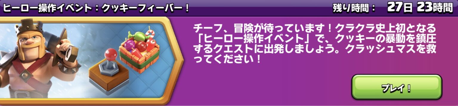 画面左下の [イベントメニューアイコン] の『ヒーロー操作イベント:クッキーフィーバー!』から [プレイ!] をタップしてもイベント画面に移動可能です。