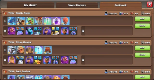 このタブには、実際に使用できるユニット編成が表示されます。自分のタウンホールレベルに合わせた編成が表示され、2種類の編成から選ぶことが可能です。