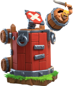 味方に向かって援護ユニットの詰まった樽を発射する固定式マシンです。樽には複数のユニットを投入できますが、クランの城のユニットは1体までです。樽の数には限りがあるため、使うタイミングを見極めましょう! |