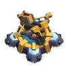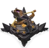 | 巨大クロスボウは絶大な威力をほこる魔法の矢を発射します。エリクサーさえ補充しておけば自動的に動作し、長距離で地上ユニットだけをねらうか短射程で全ユニットをねらうかを設定できます。 |